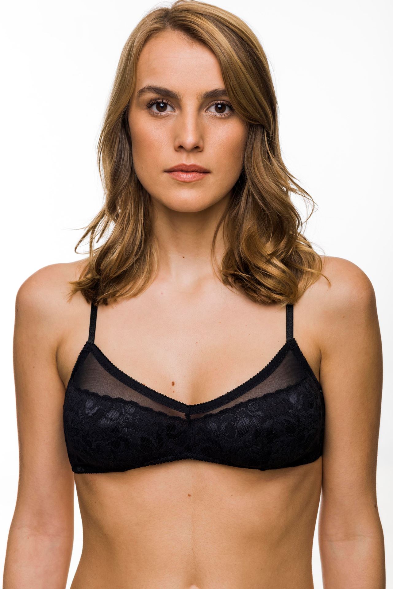 Soutien de delicado encaje combinado con microtul. Una combinación de materiales elegante y refinada.